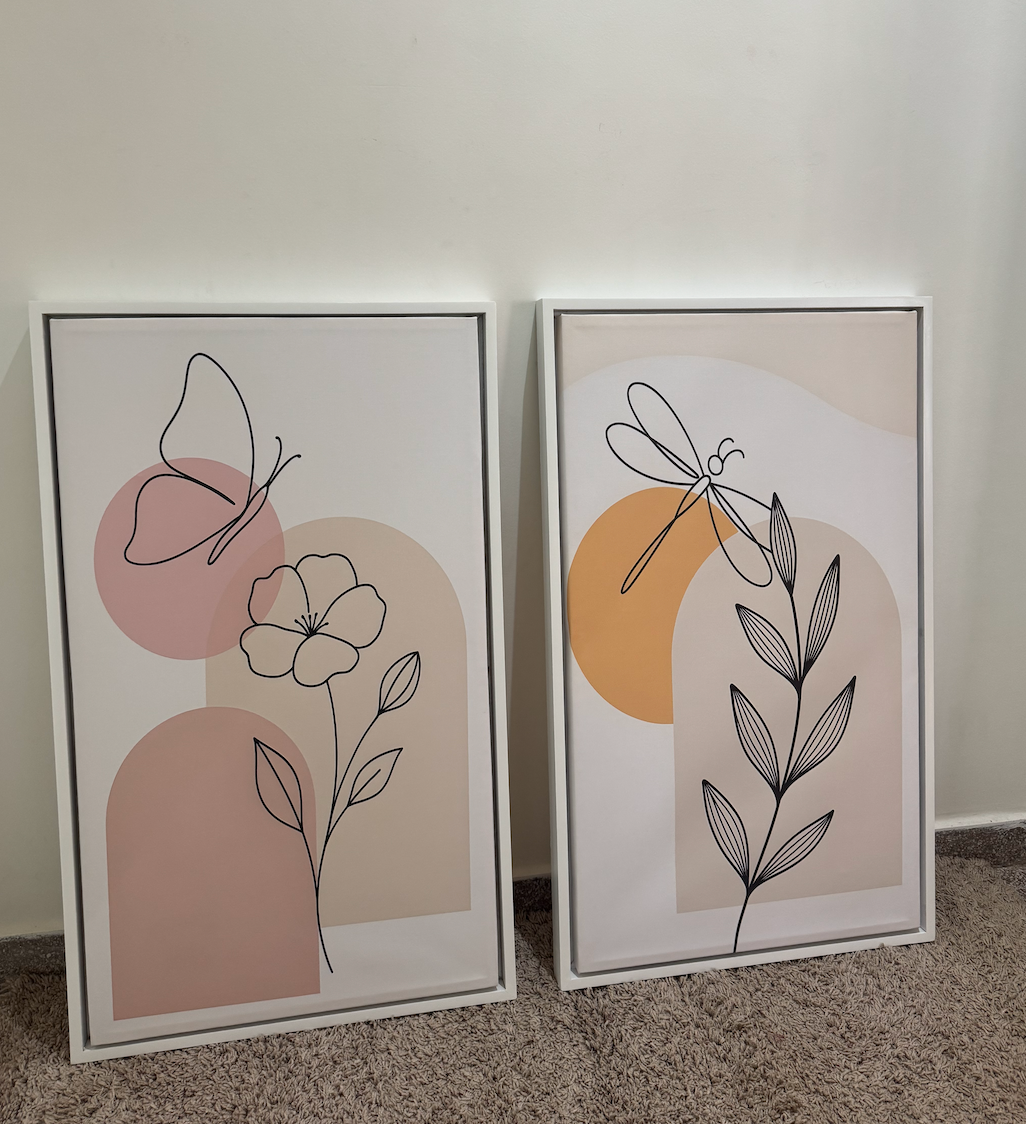 Nos tableaux sont livrés avec du matériel de suspension préinstallé et n’endommageront jamais vos murs. Ils sont assemblés et prêts à être suspendus dès la sortie de la boîte.